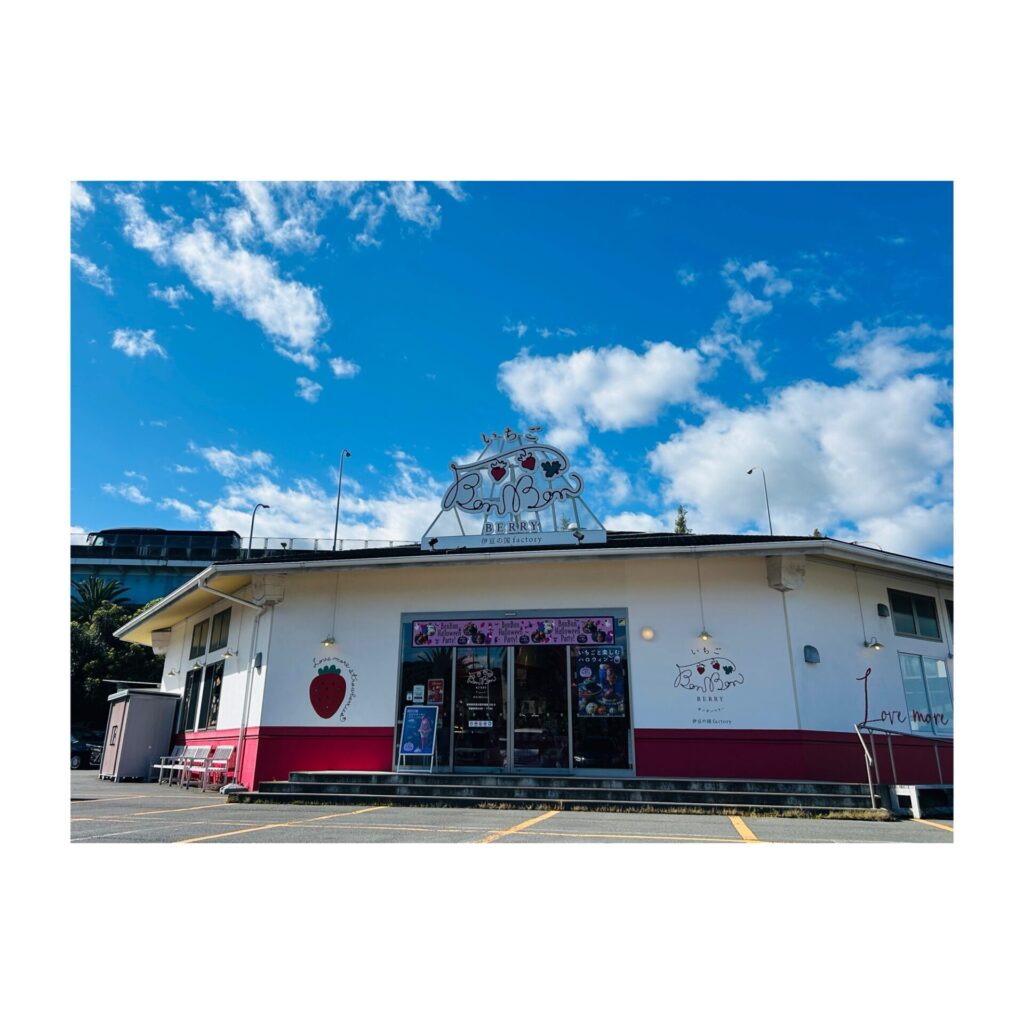 白を基調にした建物に、いちごのモチーフがあちこちに散りばめられた外観は、駐車場に車を停めた瞬間から、なんだか気持ちがふっと軽くなる雰囲気です。
